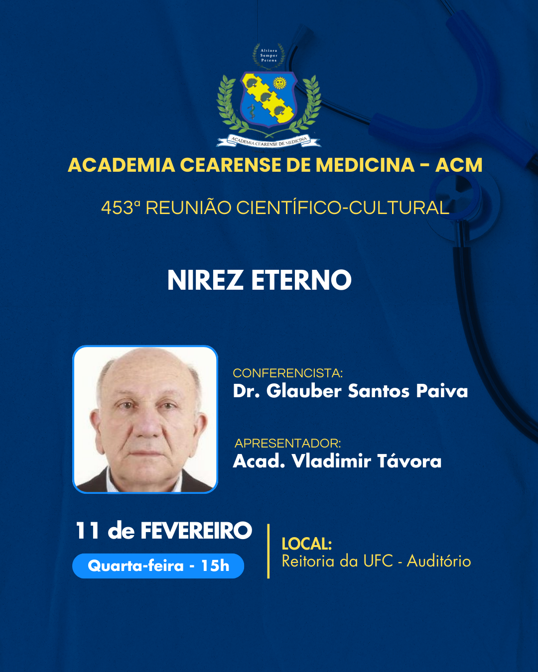 A Academia Cearense de Medicina tem a honra de convidar todos os interessados para sua 453ª Reunião Científico-cultural, um espaço de saber e reflexão.