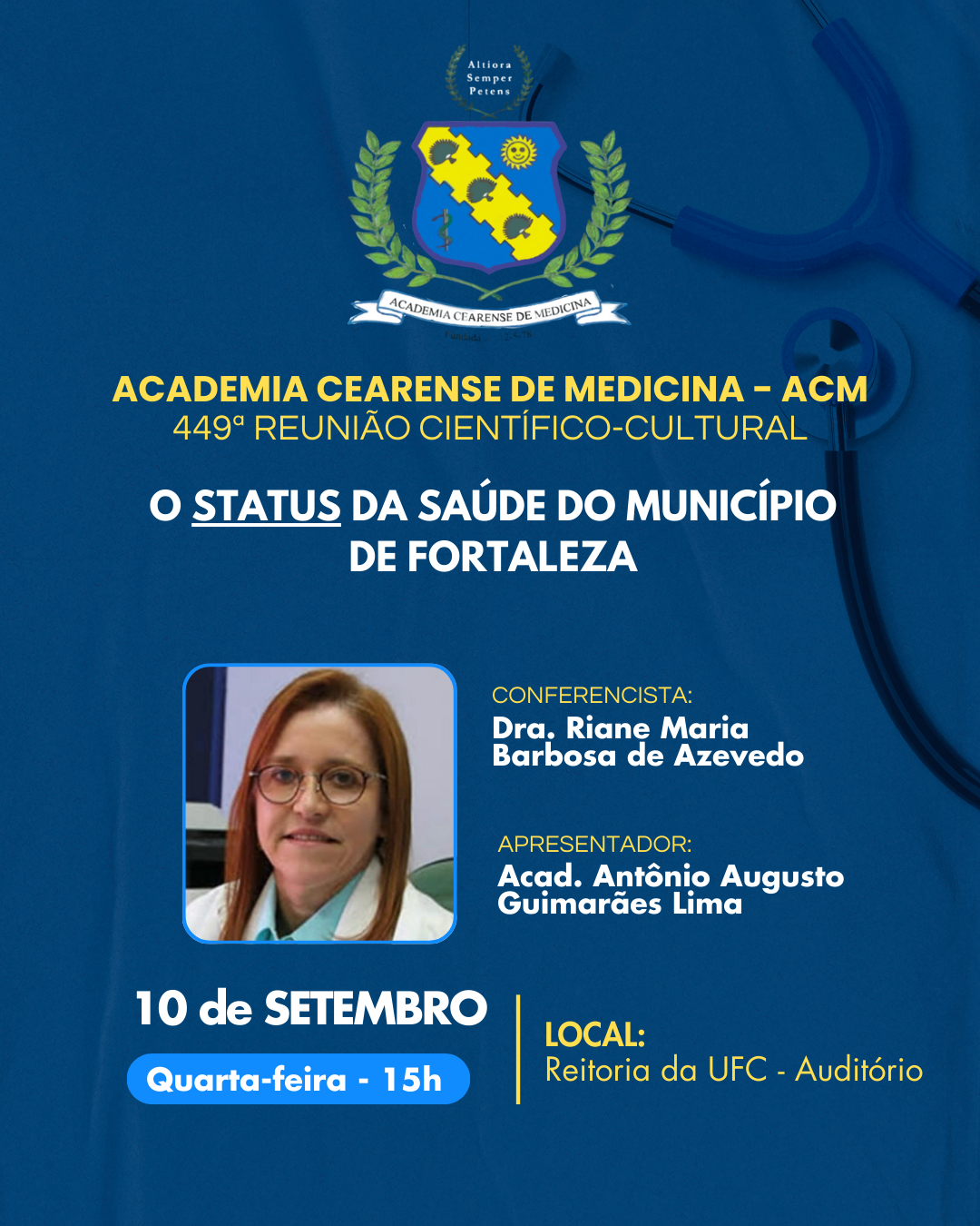 A Academia Cearense de Medicina tem a honra de convidar todos os interessados para sua 449ª Reunião Científico-cultural, um espaço de saber e reflexão.